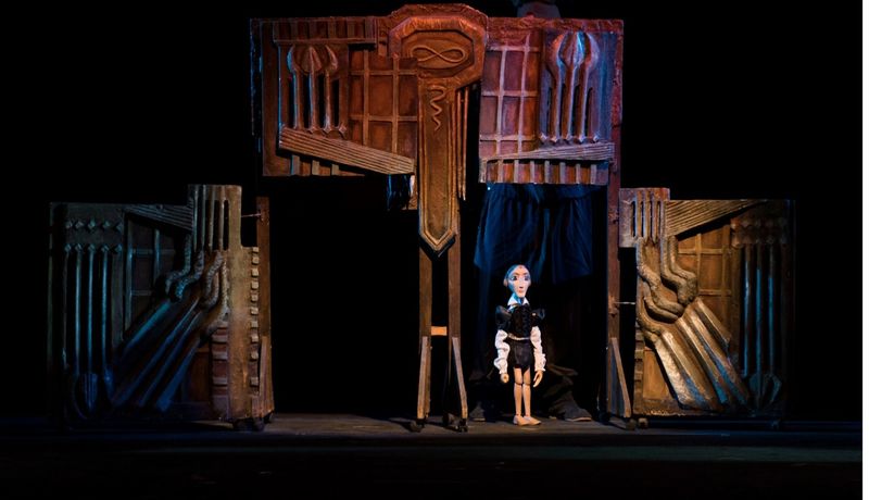 Това е различен и атрактивен спектакъл, който с шега и лекота представя сериозния шекспиров сюжет. За основа на текста е използван както оригинала на Шекспир, така и ироничния коментар на американския шекспировед Ричърд Армър – Шекспир в криво огледало. Четиримата актьори, които ще се възползват от тези текстове, ще огледат в кривото огледало на сцената собствените си комплекси. Тези комплекси ще бъдат продиктувани от един чисто човешки страх – страхът от смъртта. Този страх превръща героите от Шекспировата трагедия на отмъщението в жертви. А щом си жертва и когато го осъзнаеш, ти става още по-страшно. И се опитваш да избягаш от тази си роля. Всъщност бягаш от самия себе си. Ето тези метаморфози ни се иска да проследим с нашето представление. И то с помощта на куклите. Тук куклите са разделени на два вида. Невинните марионетки – това са “младите надежди” на Елсинор – Хамлет, Офелия, Лаерт, Халата, Фортинбрас. Останалите персонажи са свързани по някакъв начин с патинираната среда в двореца. Те сякаш изпълзяват от някакви ниши и пак се прибират там.